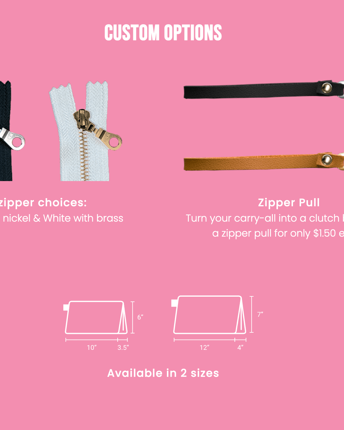 - Detail: Inner pocket for essentials, vegan leather pull tab