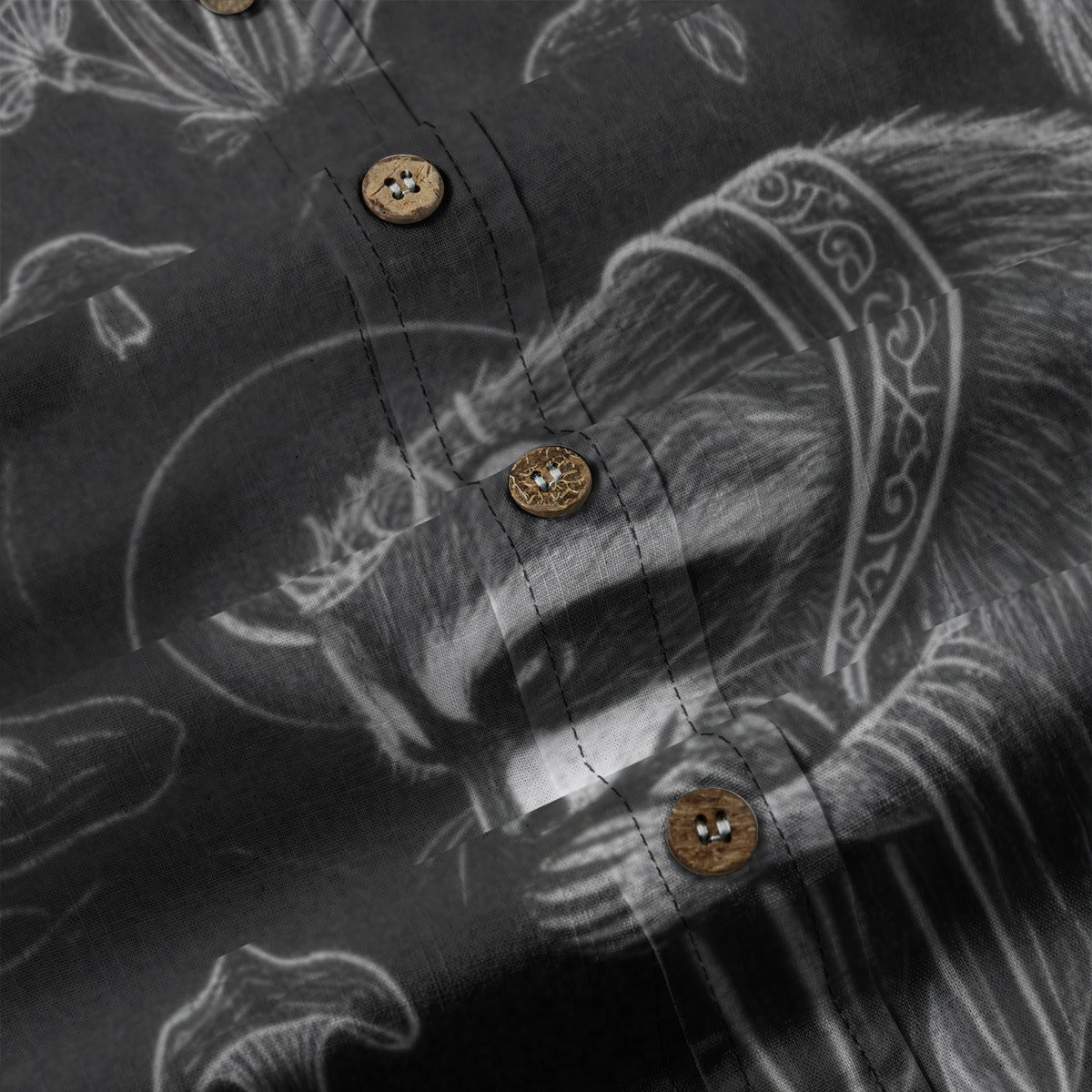 The black-on-black cotton catches light like wet stone — subtle, sacred, disciplined. It’s a shirt that feels like a vow: not loud, not showy, just sure.