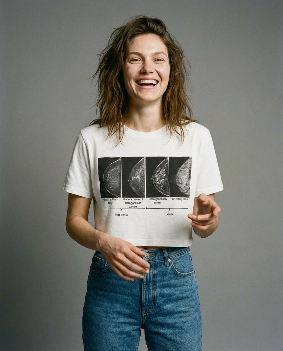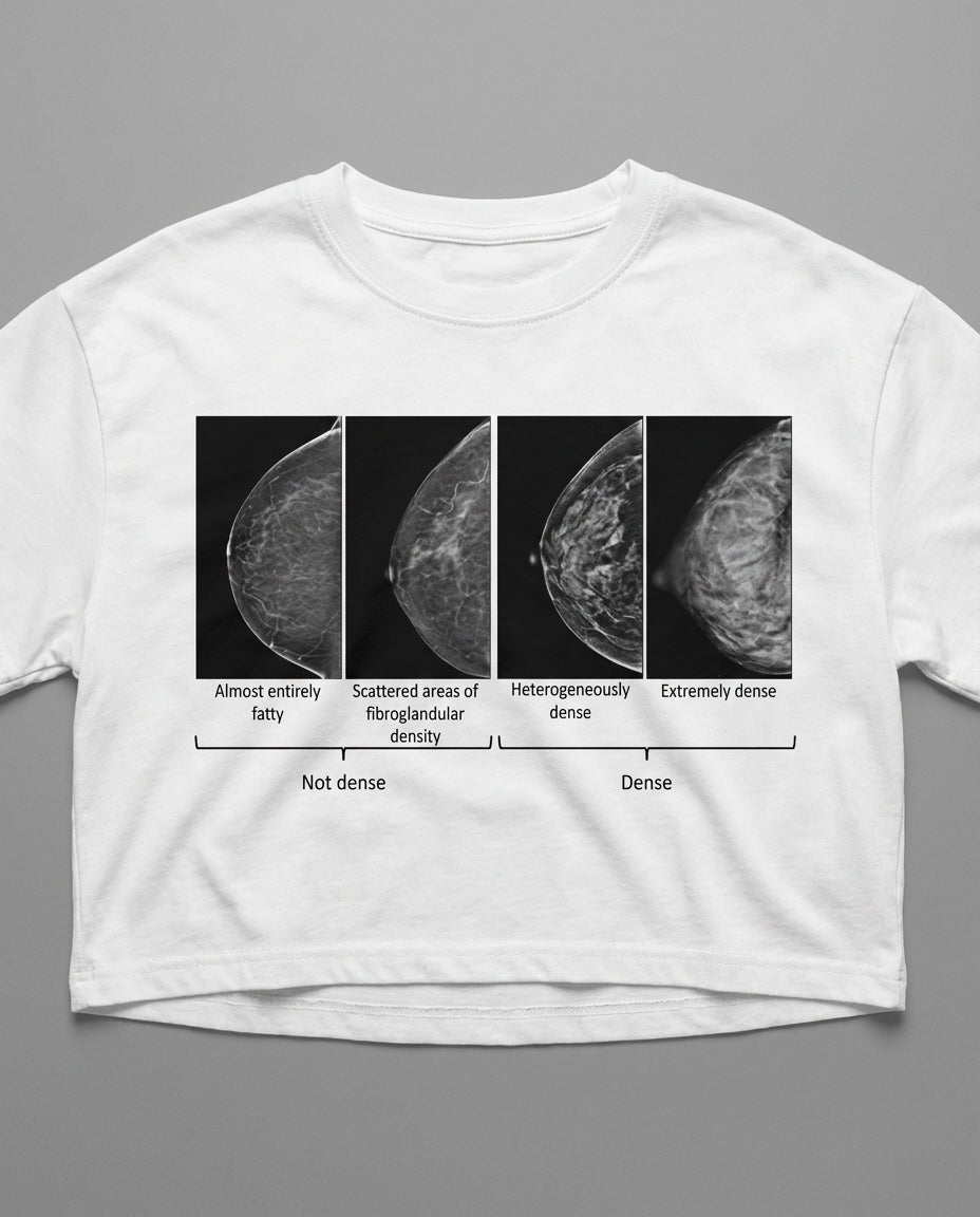 At first glance, it looks celestial. Look again. This cropped tee features an actual mammogram print—an X-ray of breast tissue turned into art. It’s about care. It’s about control. It’s about the bodies we live in and how we choose to show them. Made from heavyweight cotton and cut for a modern fit, this tee is soft, sharp, and unapologetically personal.